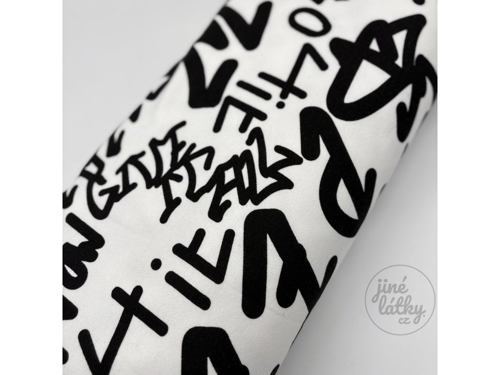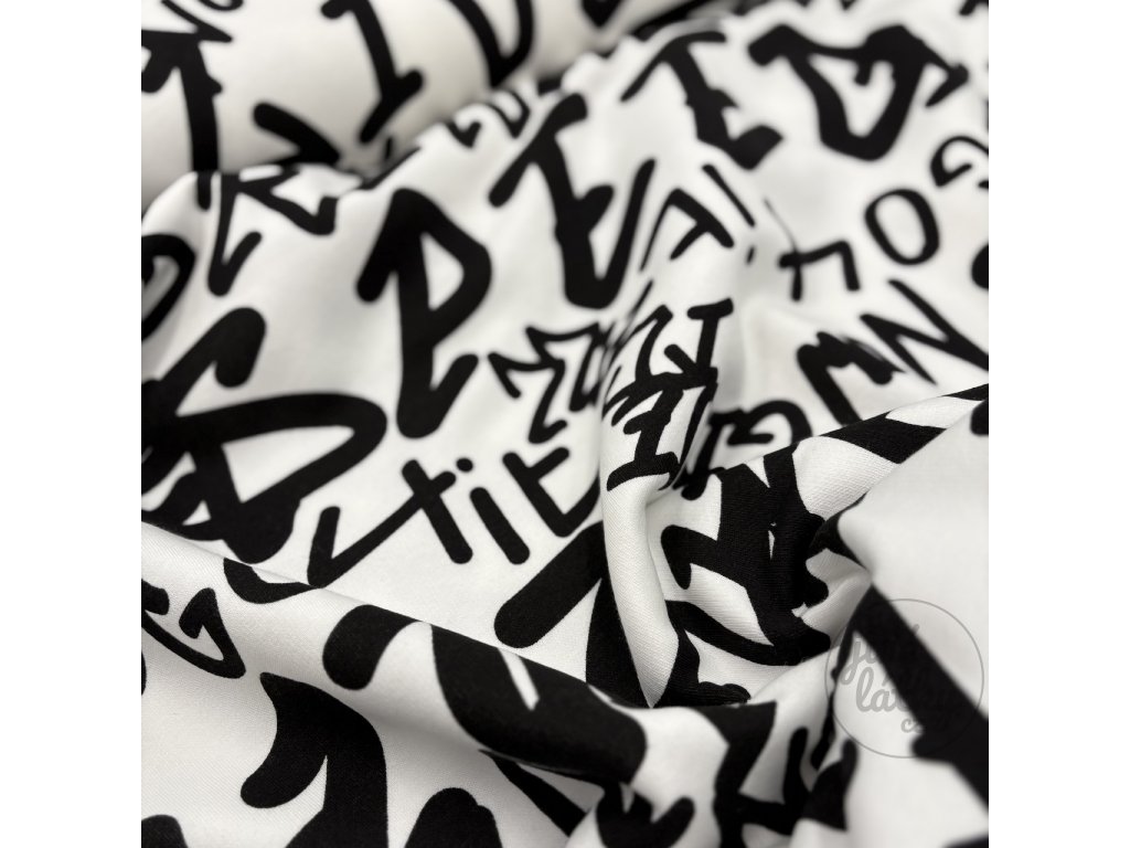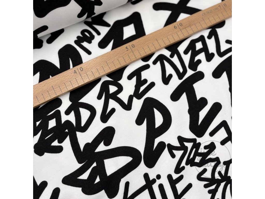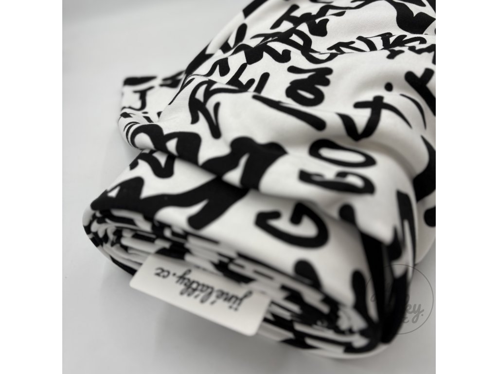 Alpenfleece teplákovina s motivem Písmena Black & White