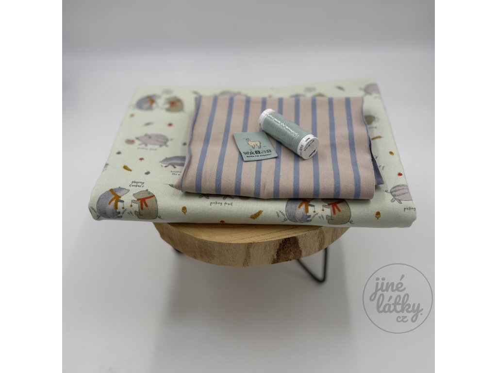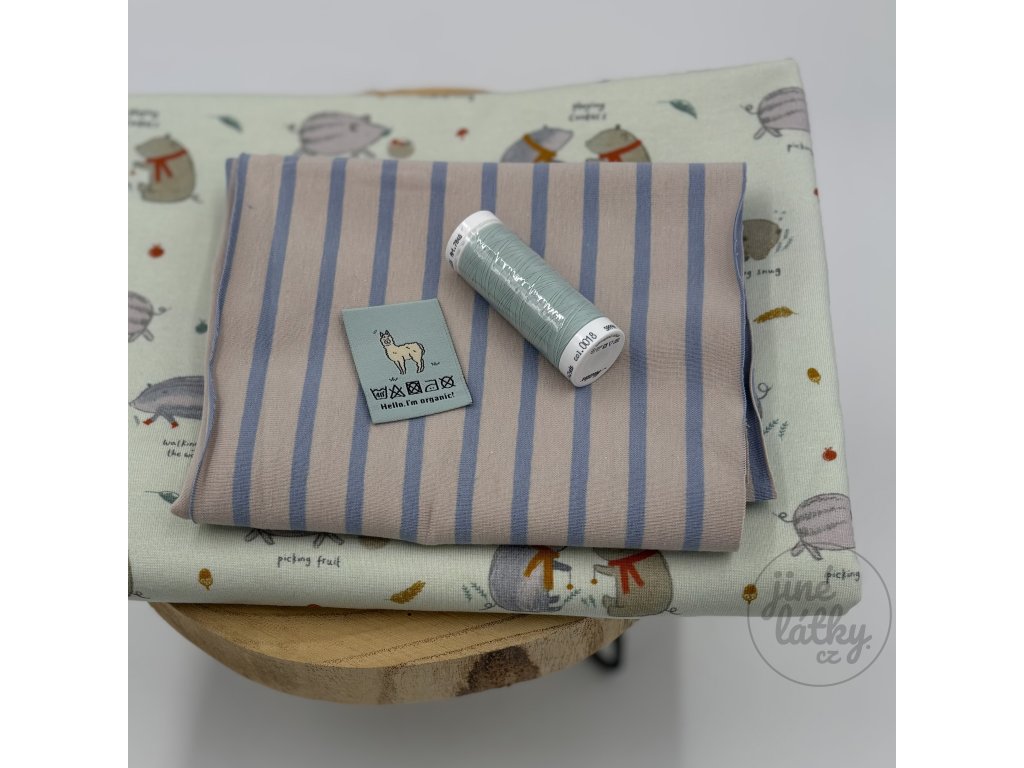 Příjemný úplet s certifikátem OEKO-TEX, ze kterého ušijete roztomilé dětské pyžamko nebo tričko či kraťásky. Látka je přímo do kombinace s designem proužku, najdete jej v balíčku také.