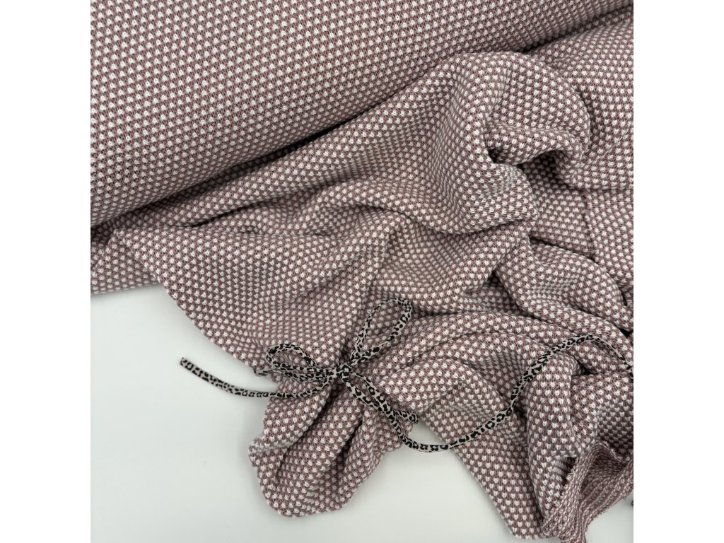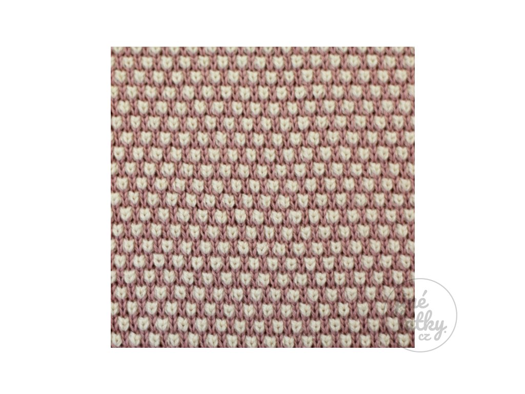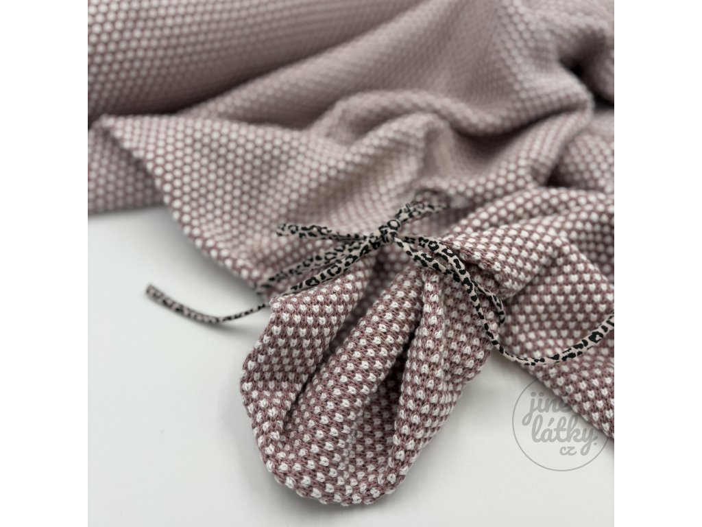 Růžovo - bílá barva je univerzální a snadno se kombinuje s přírodními tóny i výraznějšími akcenty. Hodí se pro elegantní i volnočasové kousky, díky čemuž je skvělou volbou pro kreativní šití.