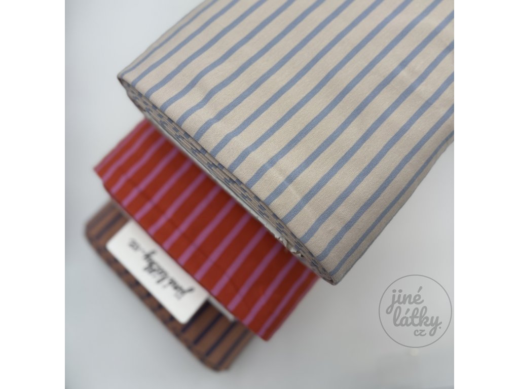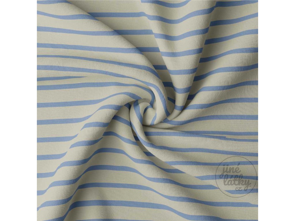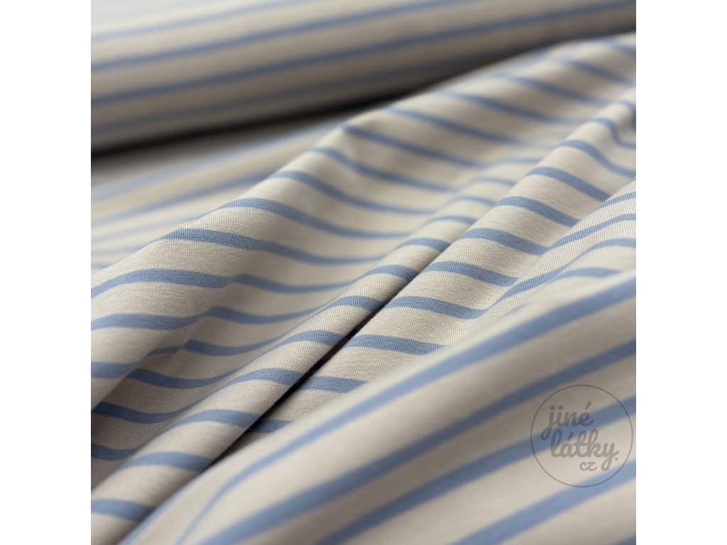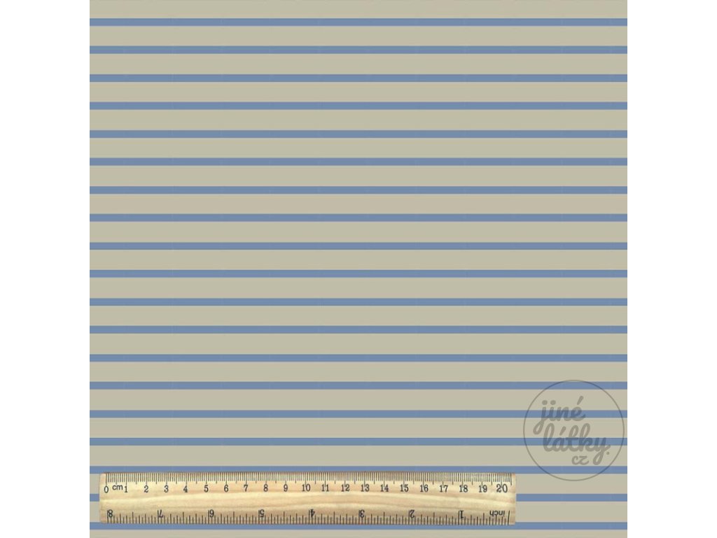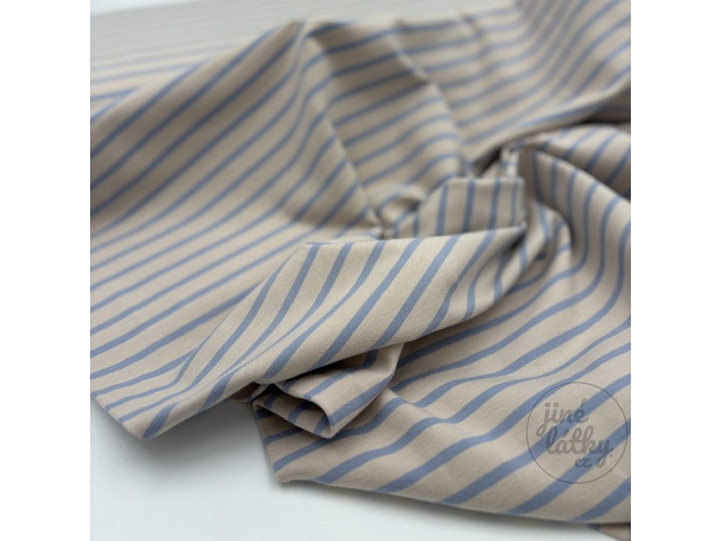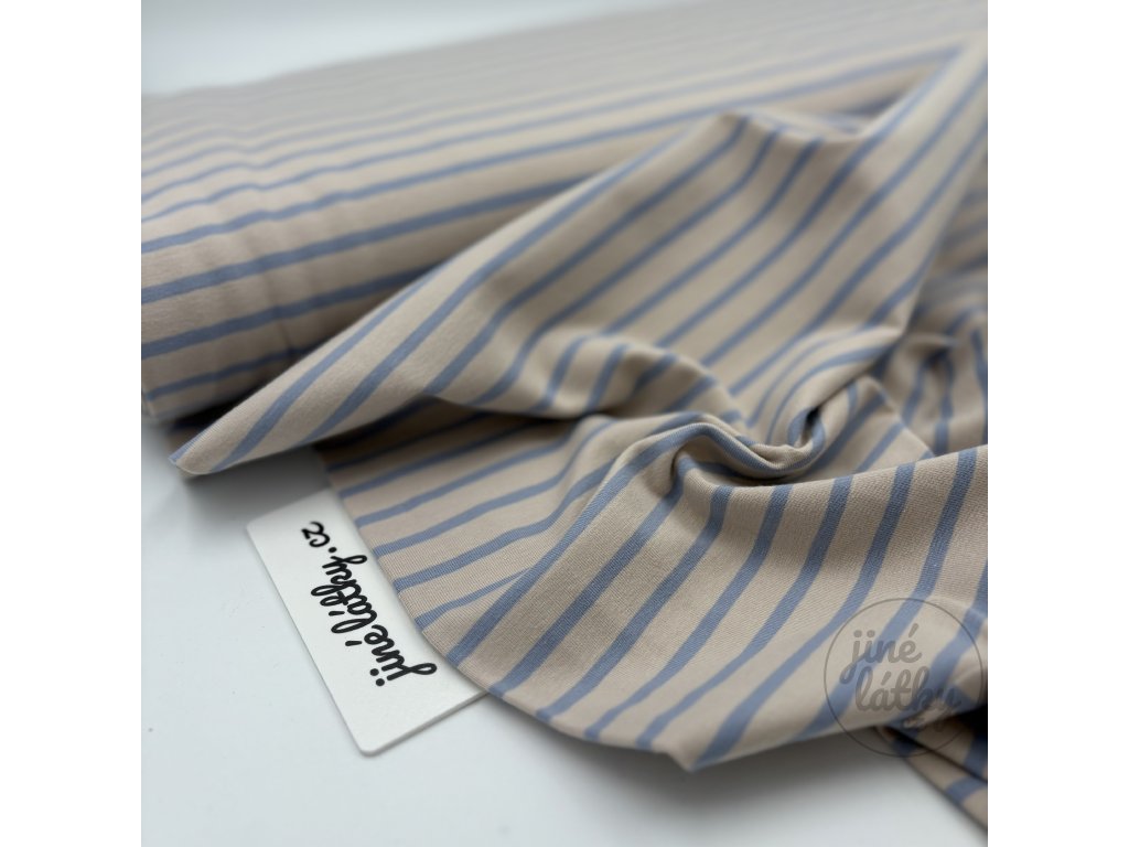 SEA – proužkovaný bavlněný úplet v pískovo - světle modré barvě – hebký, pružný, certifikovaný