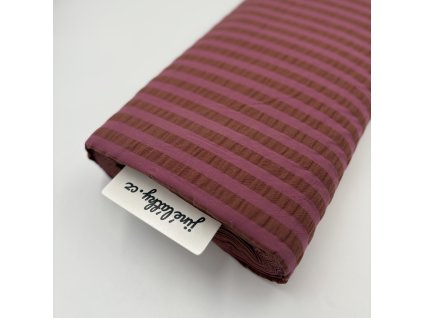 Objevte kouzlo bavlněné látky seersucker, která si získává srdce švadlenek po celé Evropě. Seersucker proužky Theodora v karamelově a tmavě fialové kombinaci spojuje přirozenou...