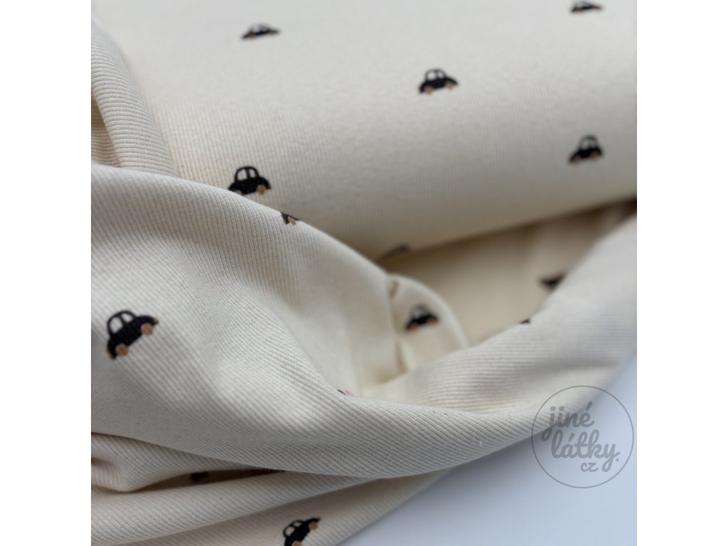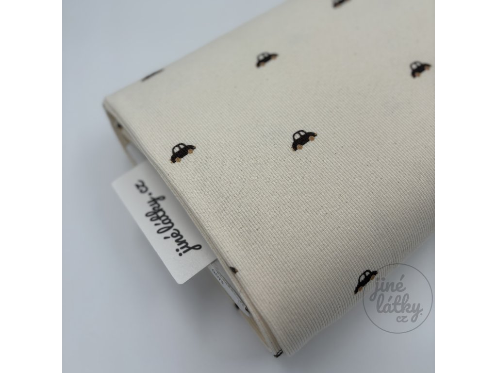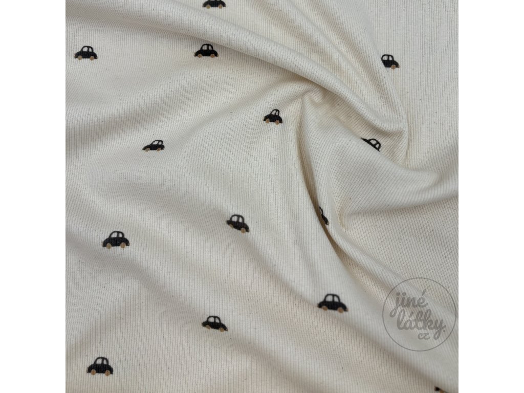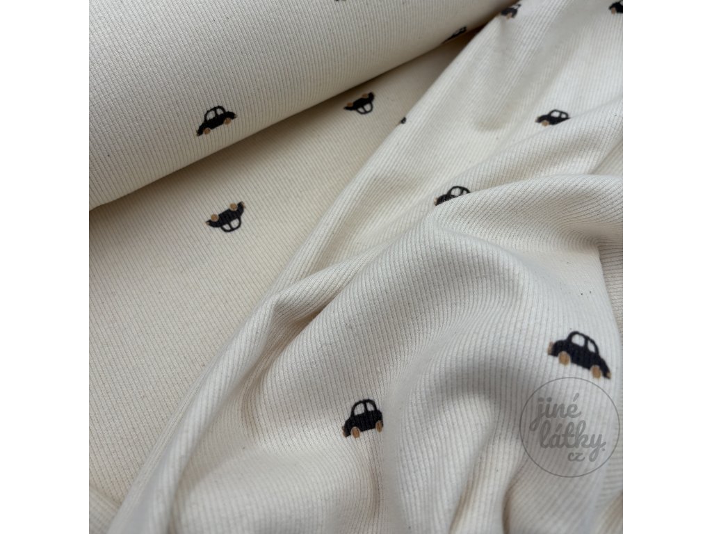 Cotton Rib – jemně smetanový žebrovaný úplet s autíčky