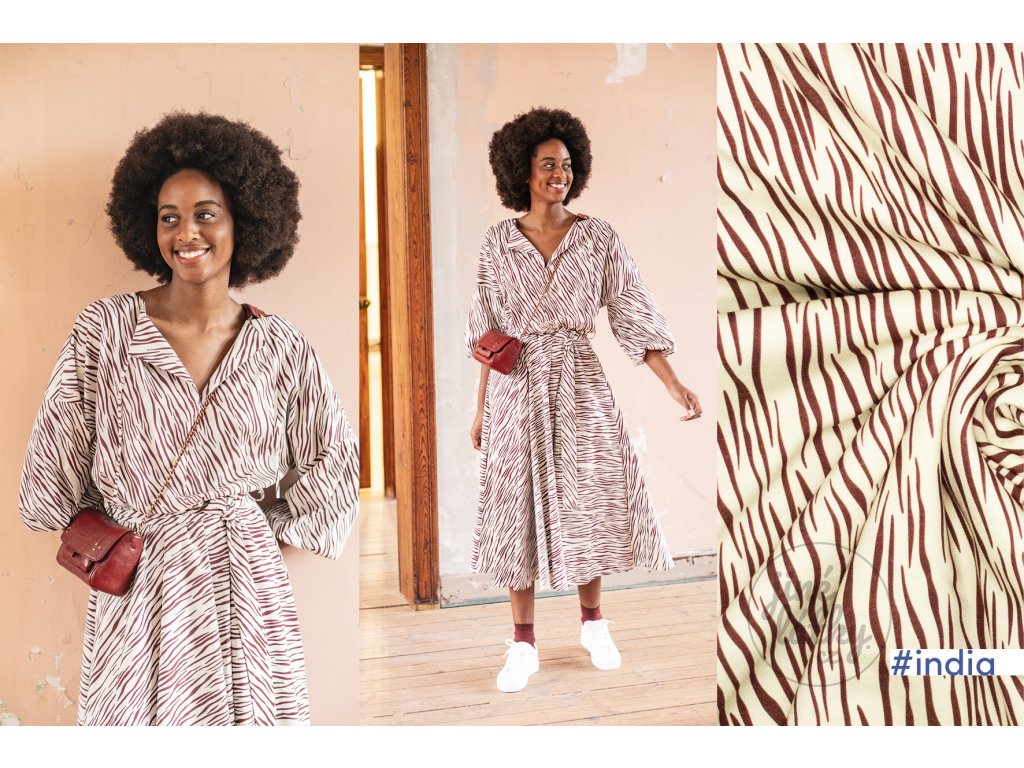 Jemná bavlněná látka s drobným madeirovým vzorkem, který obzvláští každý ušitý kousek. Skvěle se hodí na halenky, šaty a sukně, které se točí ve větru :-)Složením je 100%...