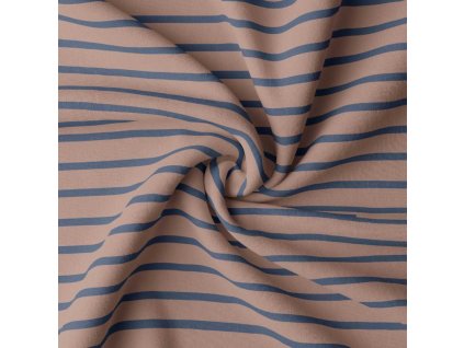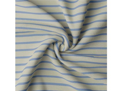 SEA – proužkovaný bavlněný úplet v pískovo - světle modré barvě – hebký, pružný, certifikovaný Zažijte radost z látky, která inspiruje Představte si příjemný dotek látky na...
