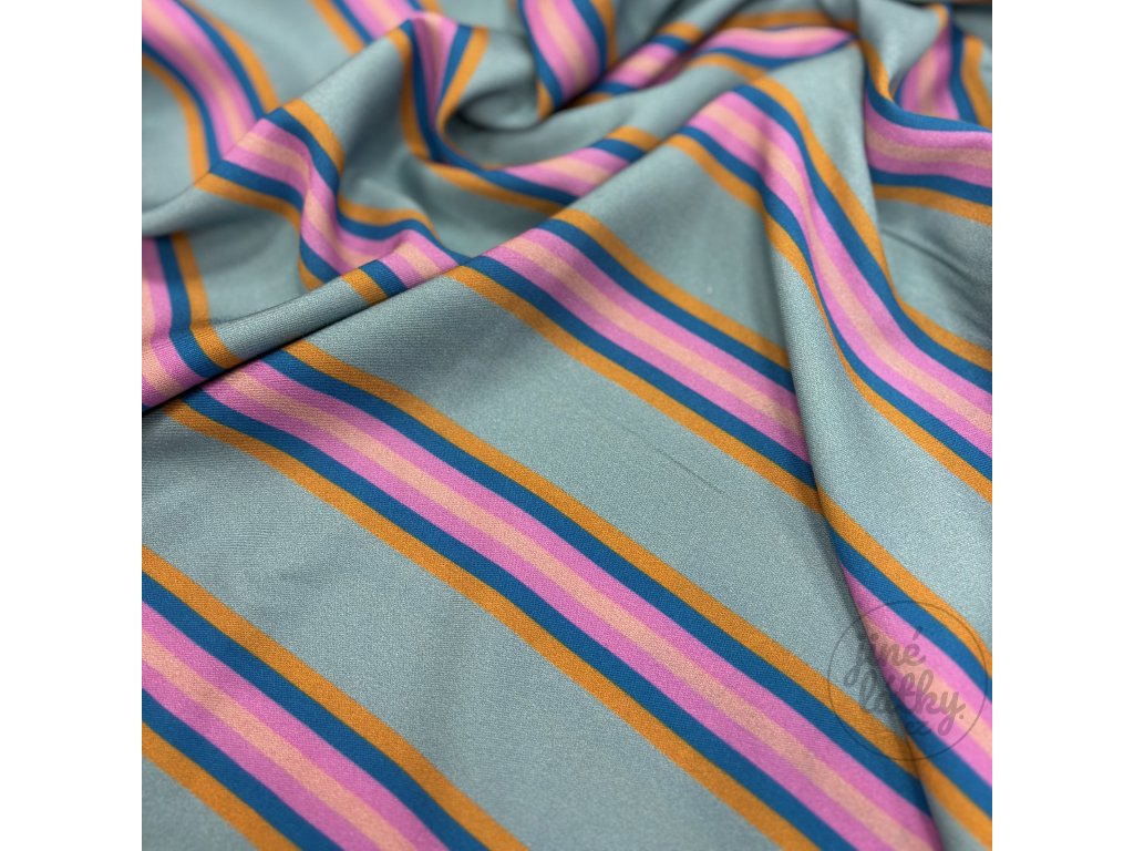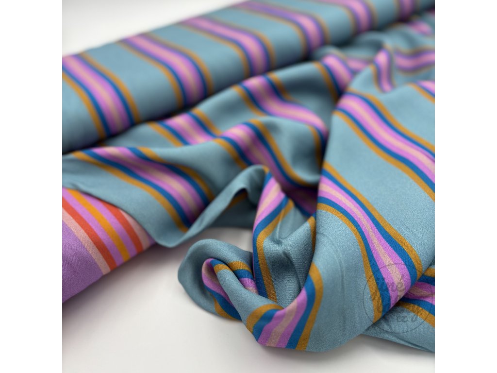 SEA – proužkovaný bavlněný úplet v pískovo - světle modré barvě – hebký, pružný, certifikovaný Zažijte radost z látky, která inspiruje Představte si příjemný dotek látky na...